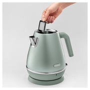 Rejoice at the pure elegance of this Distinta Perla kettle. The classic design in a contemporary shape adds a fresh and precious look to your kitchen. With convenient features including a 360 swivel base and washable water filter. The lustrous green pearlescent finish releases glimmers of light, bringing a touch of sophistication to your kitchen.