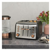 The Brooklyn 4 slice toaster with copper accents brings an element of warmth.A hint of copper can sometimes add a relaxed, rustic feel – however the metallic aspect adds a balance of modernity. Add in matte black and the combination creates a fusion of design trends that blend together perfectly.