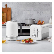 Introducing a toaster with a sophisticated design that will add modern day elegance to any kitchen. Built with a premium glossy finish, the toaster comes with a matching kettle to elevate your breakfast and makes your kitchen simply shine.