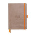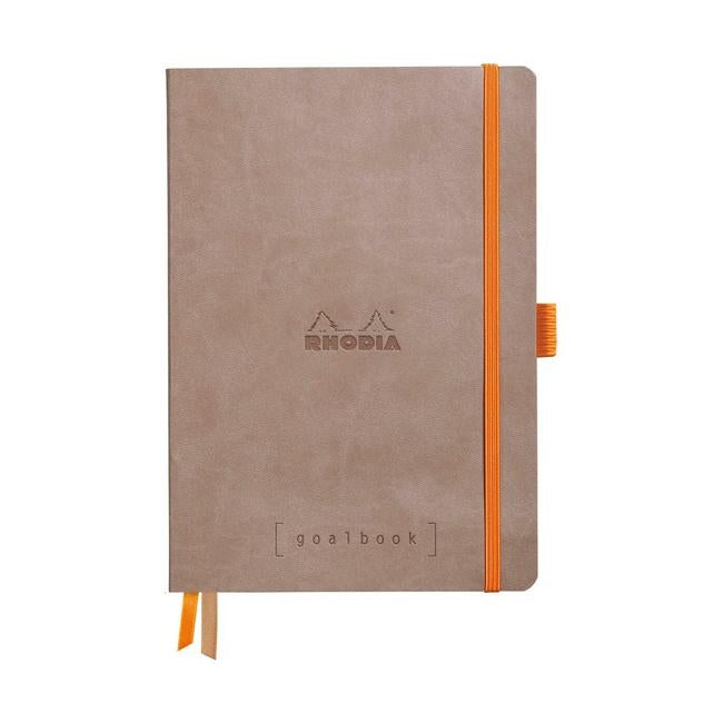 The Goalbook is perfect to organise your days and make sure you don’t forget anything. It has numbered note pages, contents tables, indexing and perpetual calendars so you can customise as you please, and design and manage your own organisation system. Jot down your lists using short, abbreviated sentences. Be even more efficient and tag them using customised symbols. As and when required, these lists of note, tasks and events can then be updated, corrected or even put on hold. Rhodiarama Goalbook notebooks feature the Rhodia logo embossed on the cover with a bright orange elastic closure, ribbon bookmark and pocket on the inside back cover, 6 page index and perpetual calendar. The paper is Clairefontaine's 90gsm bleed-proof so you can be assured of using both sides of every sheet. The lovely smooth paper is a pleasure to write on with a fountain pen. PEFC-certified from sustainable forestry. Made in France by Clairefontaine. A5 size. 240 dotted pages. Ivory coloured paper. Taupe colour soft cover.